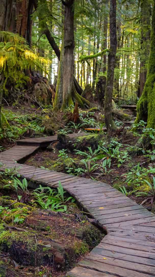 Holzpfad zum Kennedy Lake, Vancouver Island, Kanada