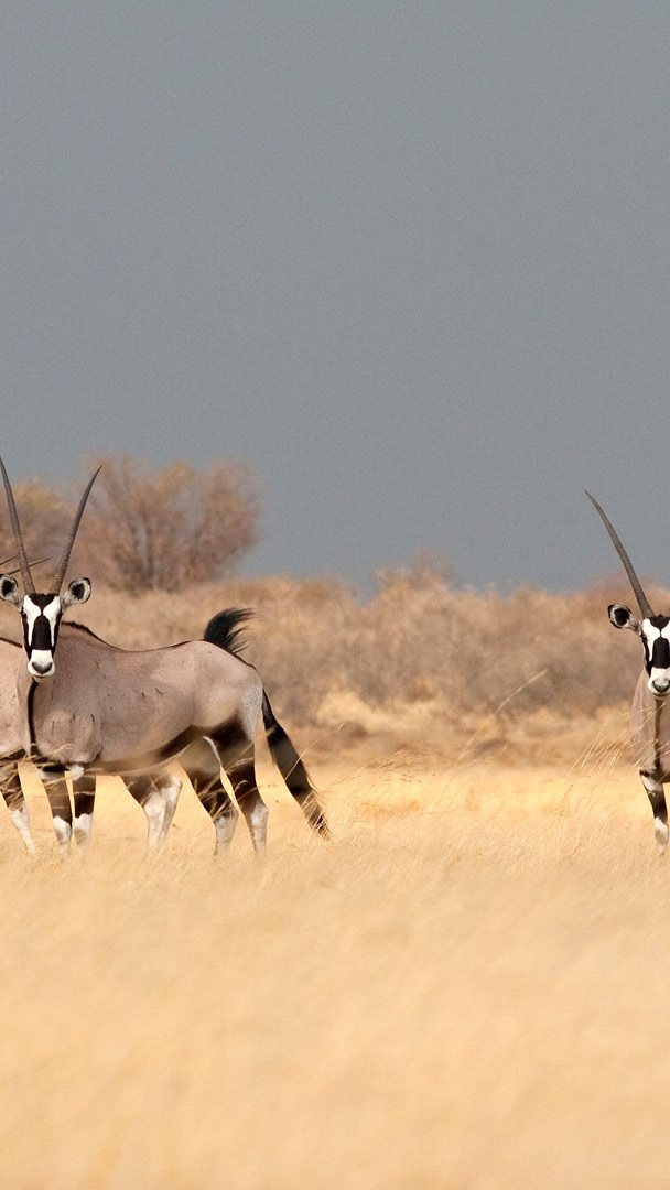 Eine Gruppe von Spießböcken in der Savanne, Botswana, Afrika