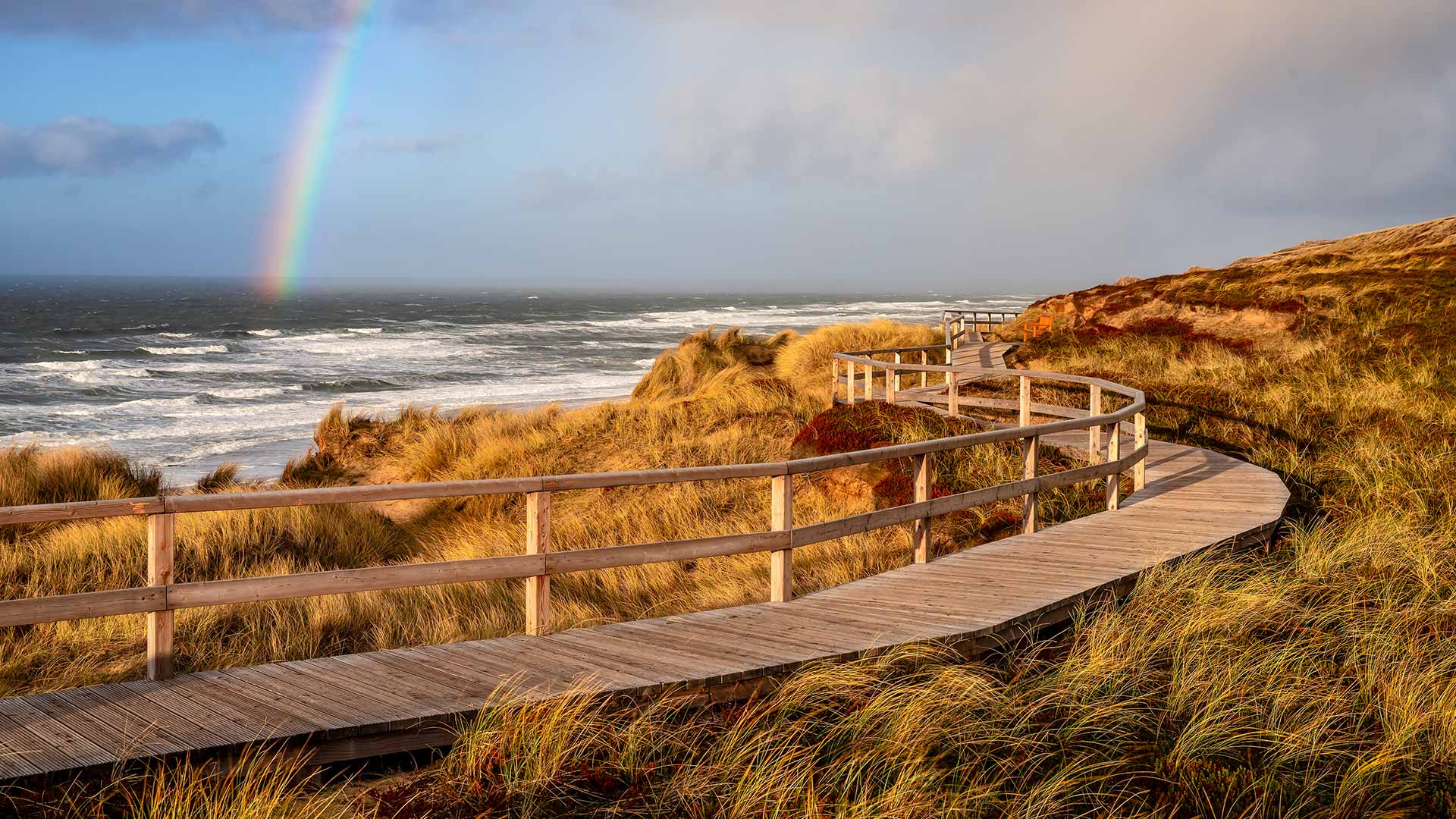 Nordfrieslands größte Insel Holzbohlenweg in den Dünen bei Wenningstedt, Sylt, Schleswig-Holstein (© Achim Thomae/Getty Images)