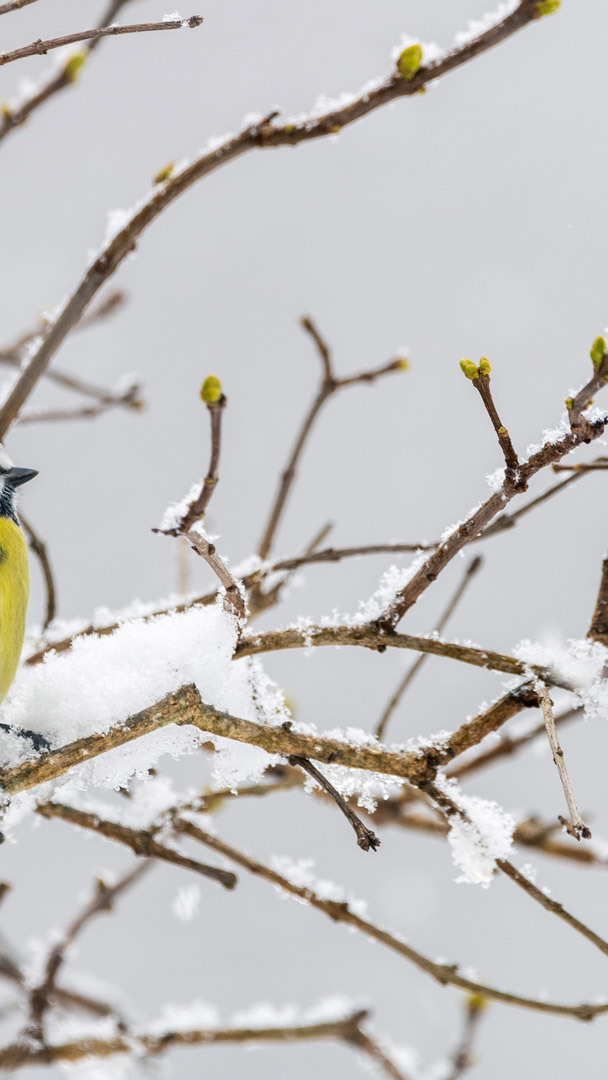 Une mésange bleue en hiver