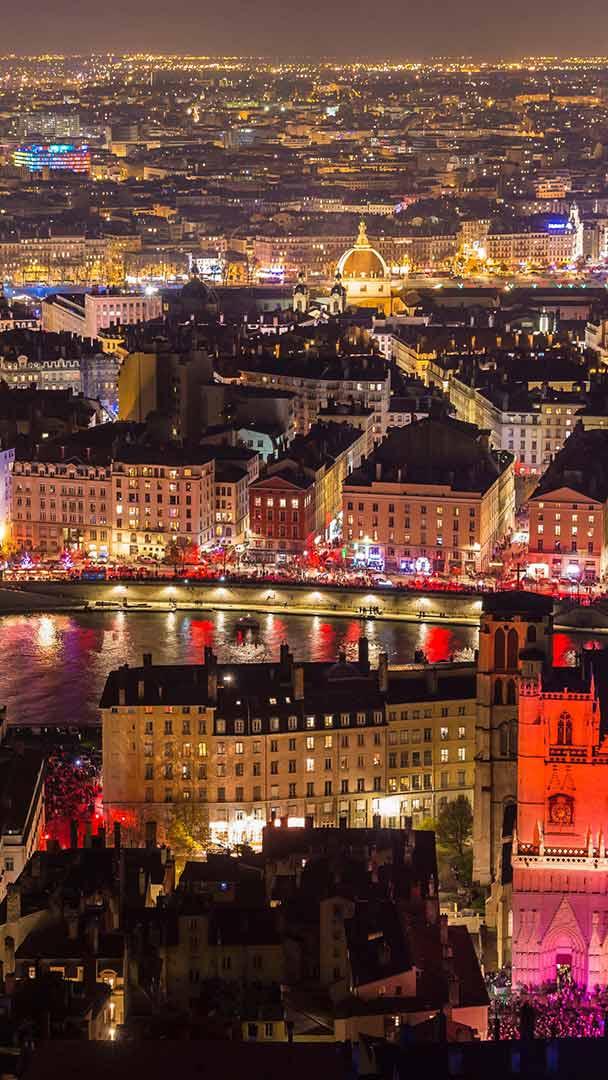 Lumière sur Lyon Le vieux Lyon et la cathédrale Saint-Jean illuminés pour la fête des lumières (© Jacques Pierre/Hemis/Alamy Stock Photo)