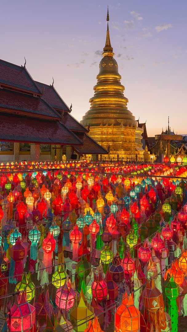 Accendiamo la Passione Lanterne colorate al tempio di Wat Phra That Hariphunchai, Lamphun, Thailandia (© MR. ANUJAK JAIMOOK/Getty Images)