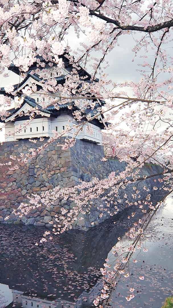 Dove risiede il potere Castello di Hirosaki con fiori di ciliegio, Hirosaki, Giappone (© Glenn Waters/Getty Images)