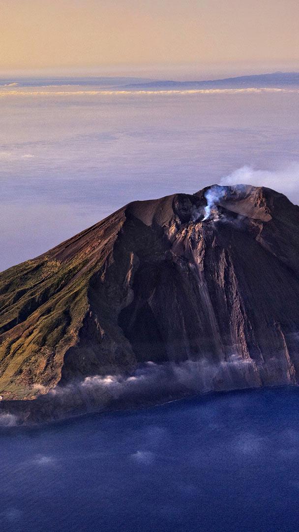 Un volcano di idee Vista aerea del vulcano di Sromboli sull’omonima isola, nell’arcipelago delle Eolie in Sicilia (© Antonino Bartuccio/Sime/eStock Photo)