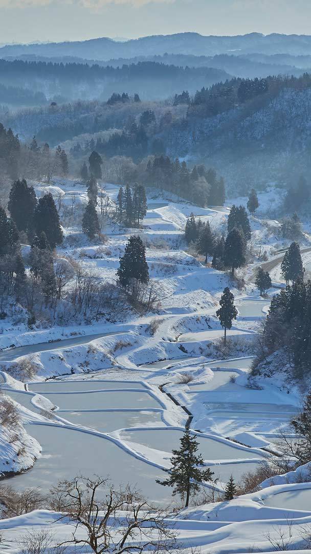 雪に覆われた温泉の街