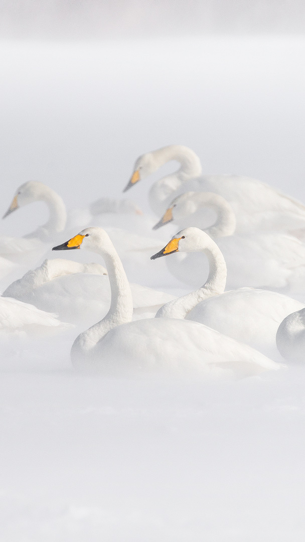 夕陽に染まる空を舞う冬の使者