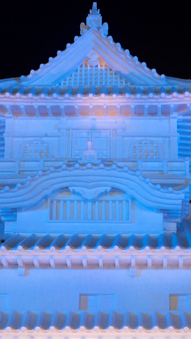 ライトアップされた幻想的な氷柱