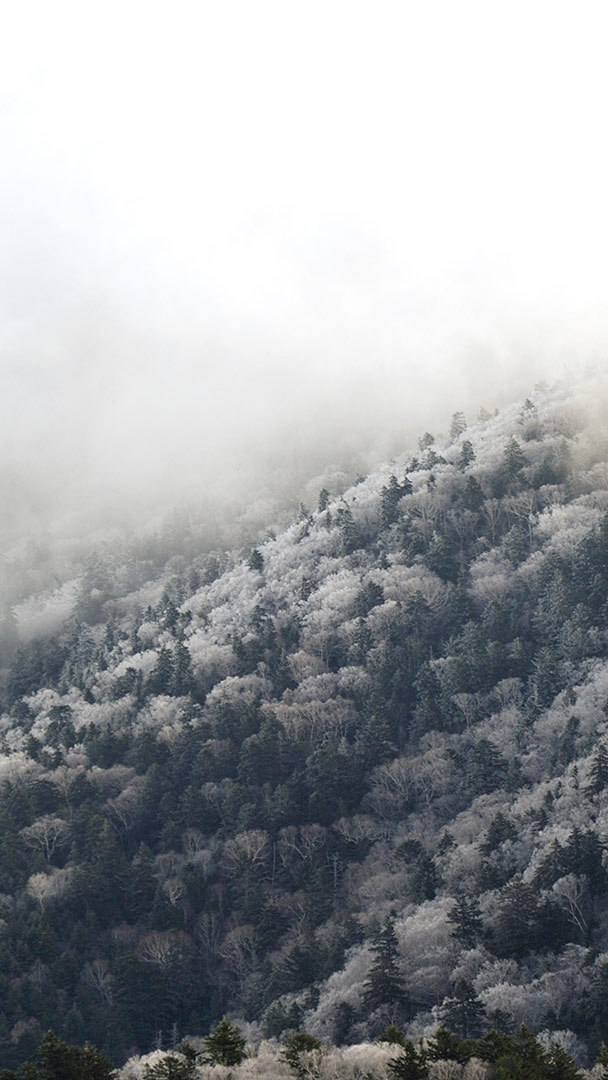 紅葉した白樺の樹々
