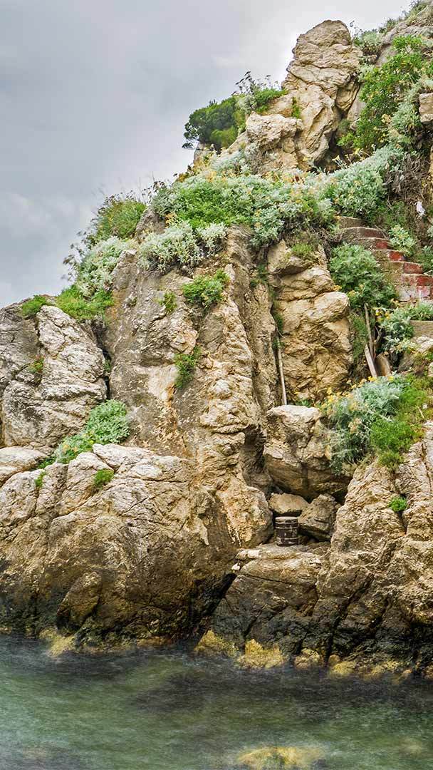 A cliffside harbor in Sardinia