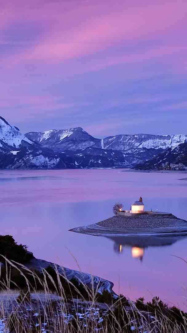 Chapel of St. Michel on Lake Serre-Ponçon, Hautes-Alpes, France