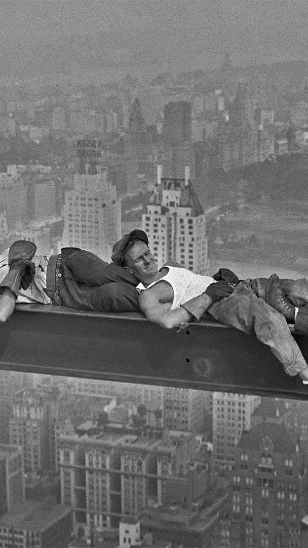 Construction workers resting above Manhattan