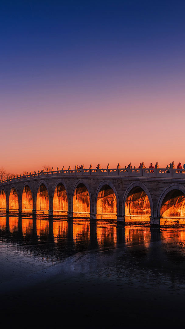 Seventeen arches at sunset